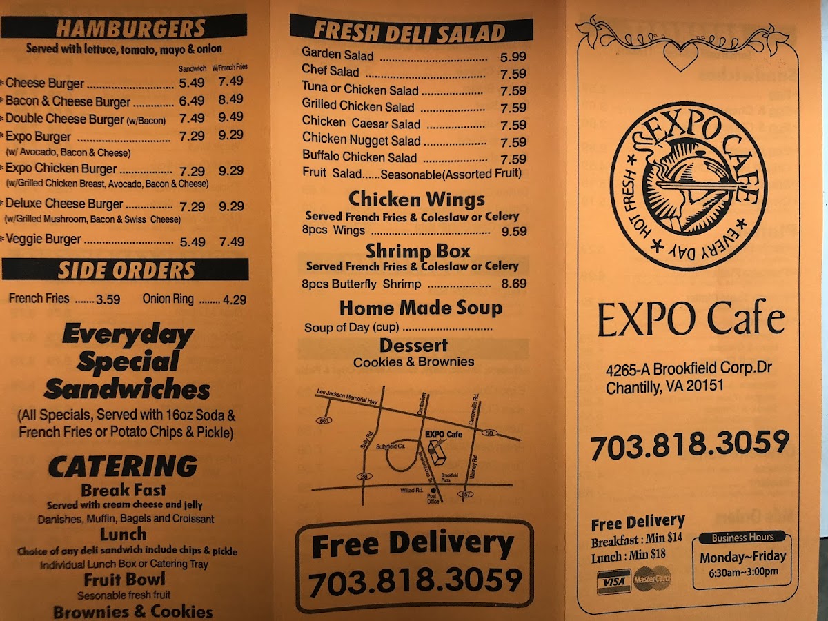 Expo Cafe & Grill, located at 4265A Brookfield Corporate Dr #A in Chantilly, VA, offers a diverse and satisfying menu that caters to a variety of tastes and preferences. For those seeking a fresh and healthy option, the Fresh Deli Salad section includes the classic Garden Salad and the more hearty Chef Salad, both perfect for a light, yet flavorful meal.